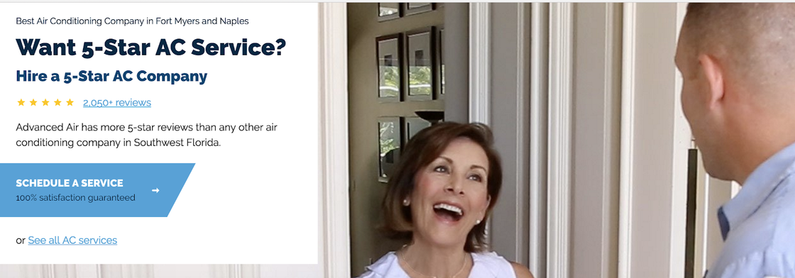 Another example: Advanced Air came to us with a simple but effective point of differentiation: They have the most 5-star ratings in their area. Providing the proof was easy: provide a link to all the reviews.