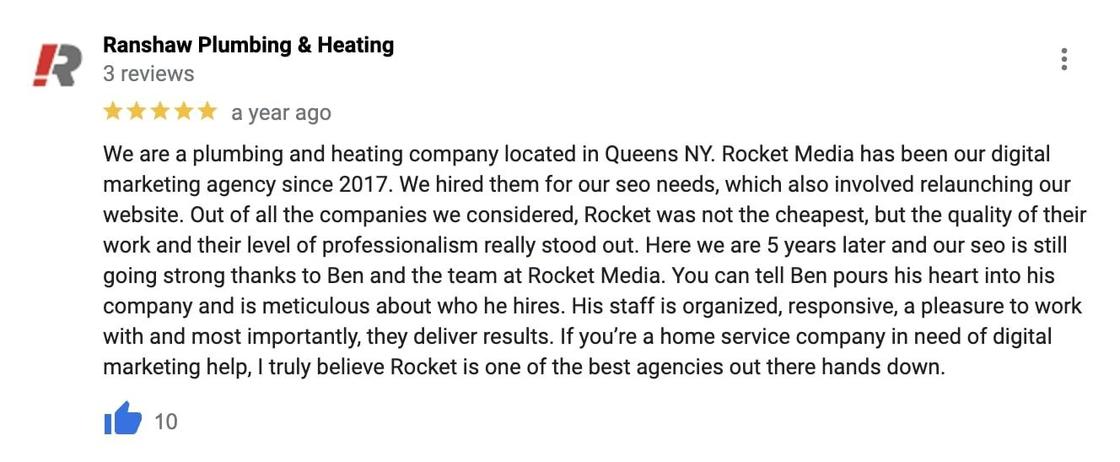 Rocket Media has you covered. Over the last 20 years we’ve helped countless home services companies bolster their online presence with increased Google reviews. Rest assured that our SEO specialists know what works– and what doesn’t!- when it comes to building your Google Business Profile. Schedule a free consultation below and we’ll help you get started.