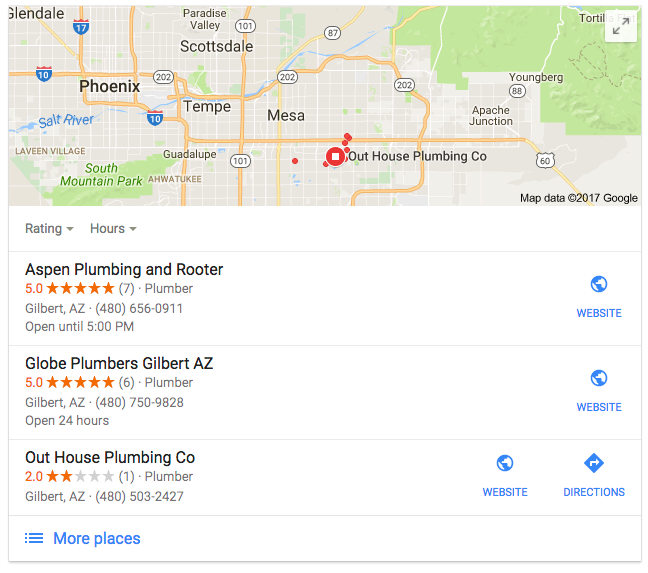 So why don’t other, possibly better plumbing contractors show up in the Google Maps search results? Their physical address is too far from my location, and they haven’t properly optimized their web content.