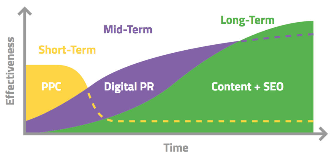 The downside to the quick and dirty method, as the little yellow line shows, is that PPC isn’t a great solution for the long term. It can also be a massive waste of money if you’re not doing it right or if your landing pages aren’t designed well.