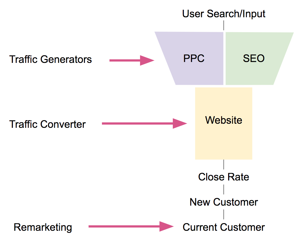Each part of the funnel plays an important role in getting leads, but you can see that your website is the pivotal area that turns leads into customers.