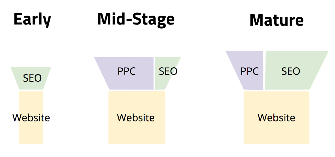 See how the mature funnel relies more on SEO than it does on PPC? That doesn’t happen overnight.